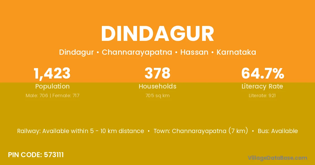 Channarayapatna (7 km) is the nearest town to Dindagur village for major economic activities and is located approximately 7 km away.