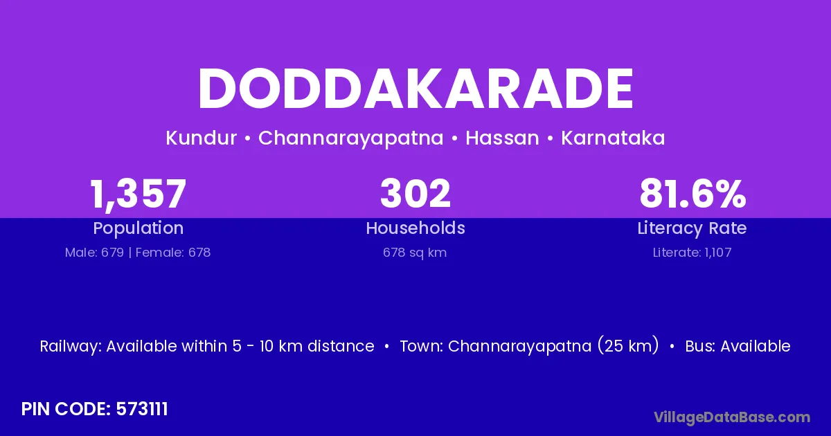 Doddakarade village has a total population of 1,357 people, of which 679 are males and 678 are females.
