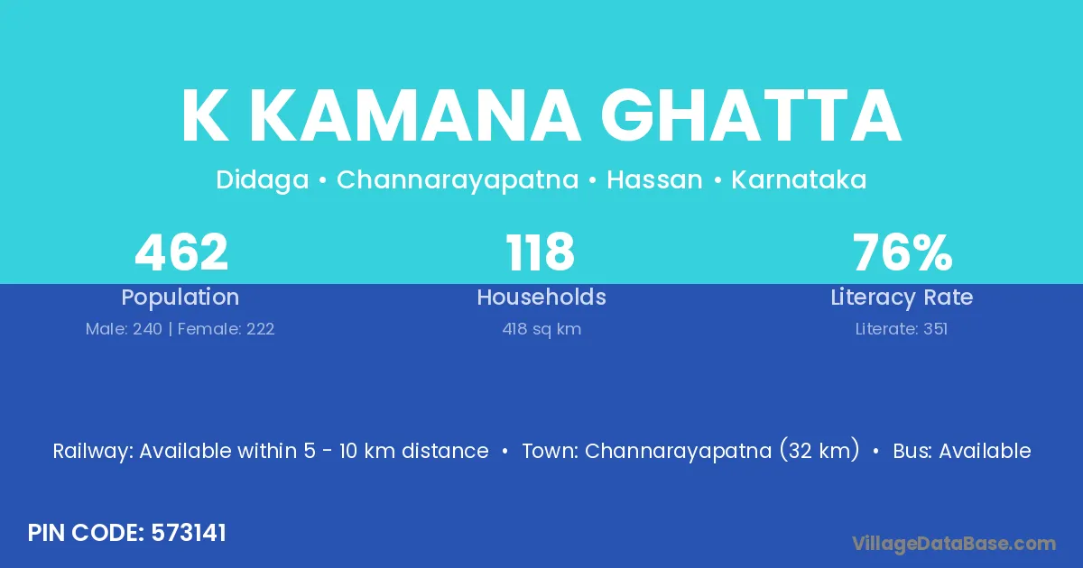 Channarayapatna (32 km) is the nearest town to K Kamana Ghatta village for major economic activities and is located approximately 32 km away.