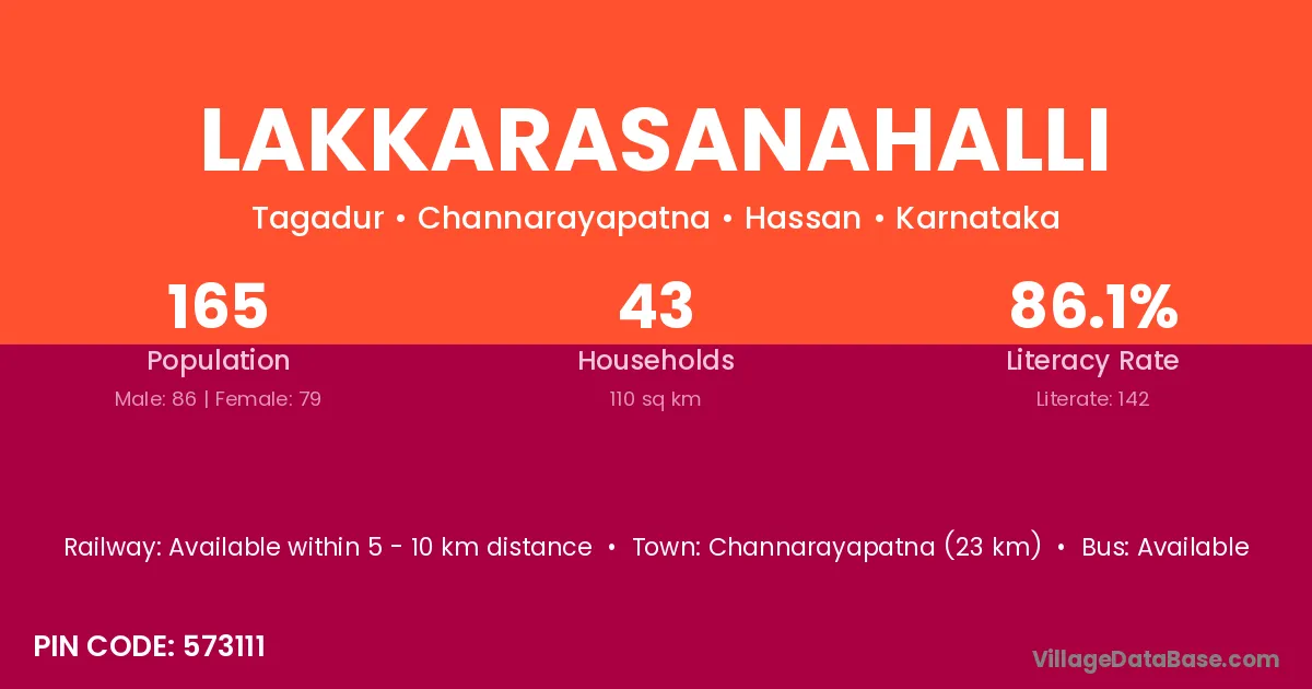 Lakkarasanahalli village has a total population of 165 people, of which 86 are males and 79 are females.