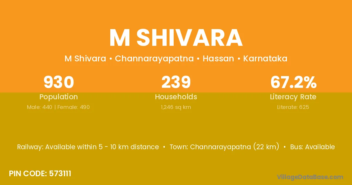Channarayapatna (22 km) is the nearest town to M Shivara village for major economic activities and is located approximately 22 km away.