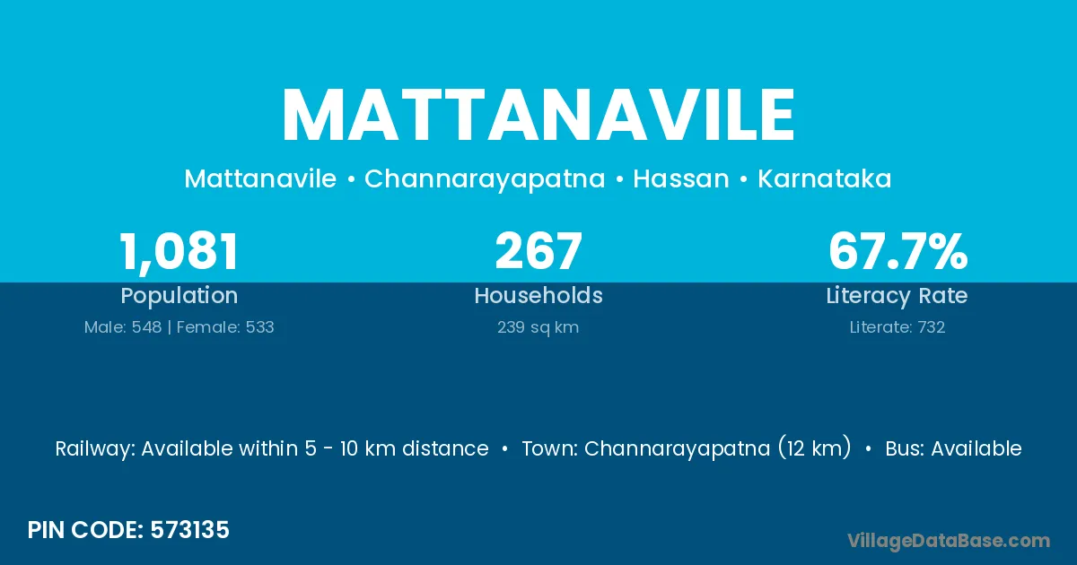 Channarayapatna (12 km) is the nearest town to Mattanavile village for major economic activities and is located approximately 12 km away.