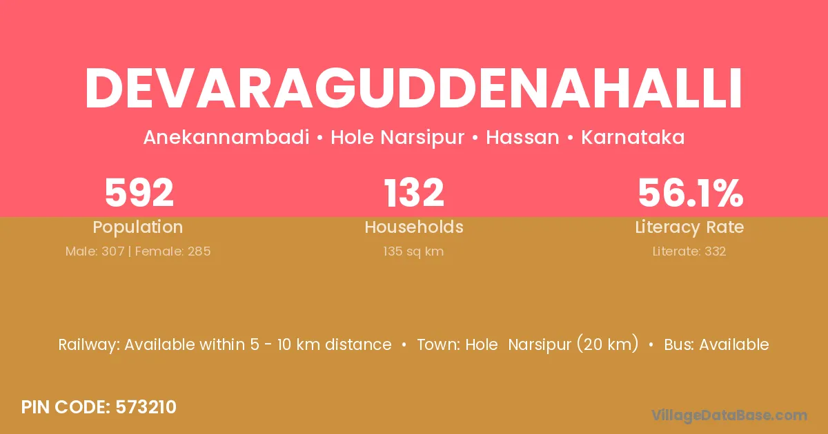 Devaraguddenahalli village has a total population of 592 people, of which 307 are males and 285 are females.