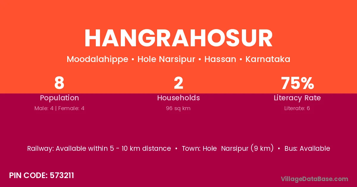 Hole Narsipur (9 km) is the nearest town to Hangrahosur village for major economic activities and is located approximately 9 km away.