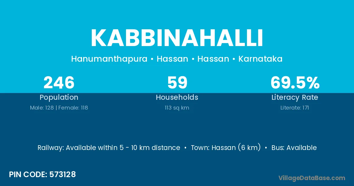 Hole Narsipur (17 km) is the nearest town to Kabbinahalli village for major economic activities and is located approximately 17 km away.