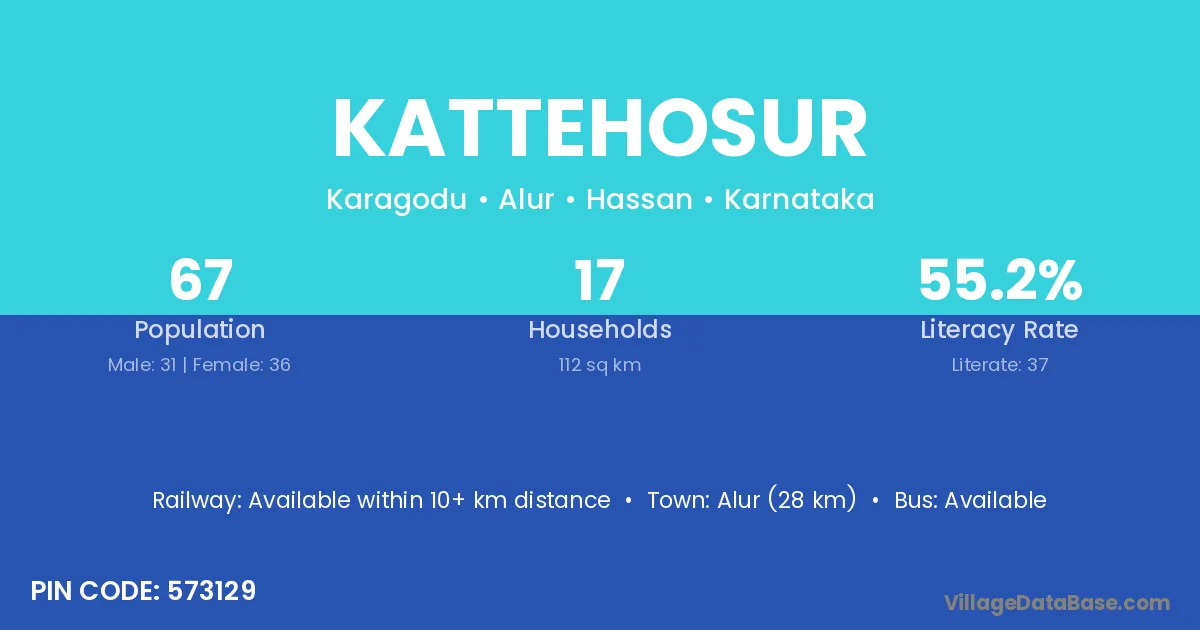 Hole Narsipur (15 km) is the nearest town to Kattehosur village for major economic activities and is located approximately 15 km away.