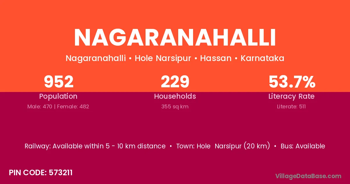 Hole Narsipur (20 km) is the nearest town to Nagaranahalli village for major economic activities and is located approximately 20 km away.