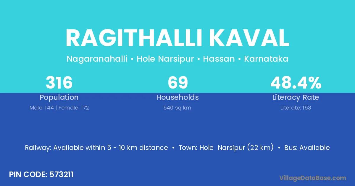 Hole Narsipur (22 km) is the nearest town to Ragithalli Kaval village for major economic activities and is located approximately 22 km away.