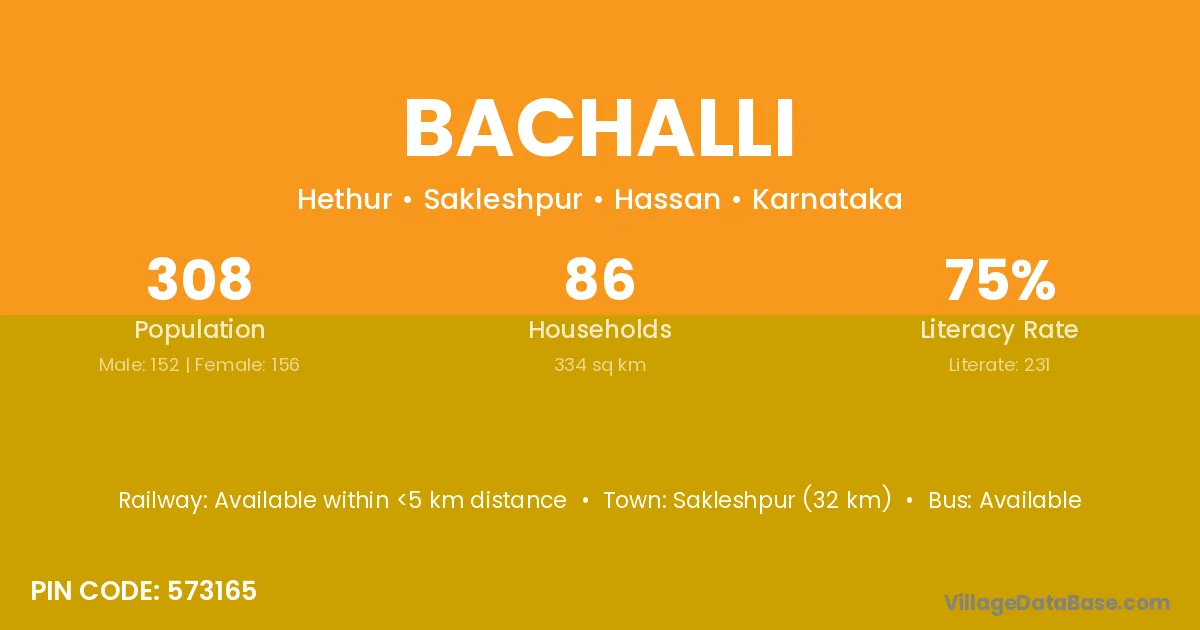 Sakleshpur (32 km) is the nearest town to Bachalli village for major economic activities and is located approximately 32 km away.