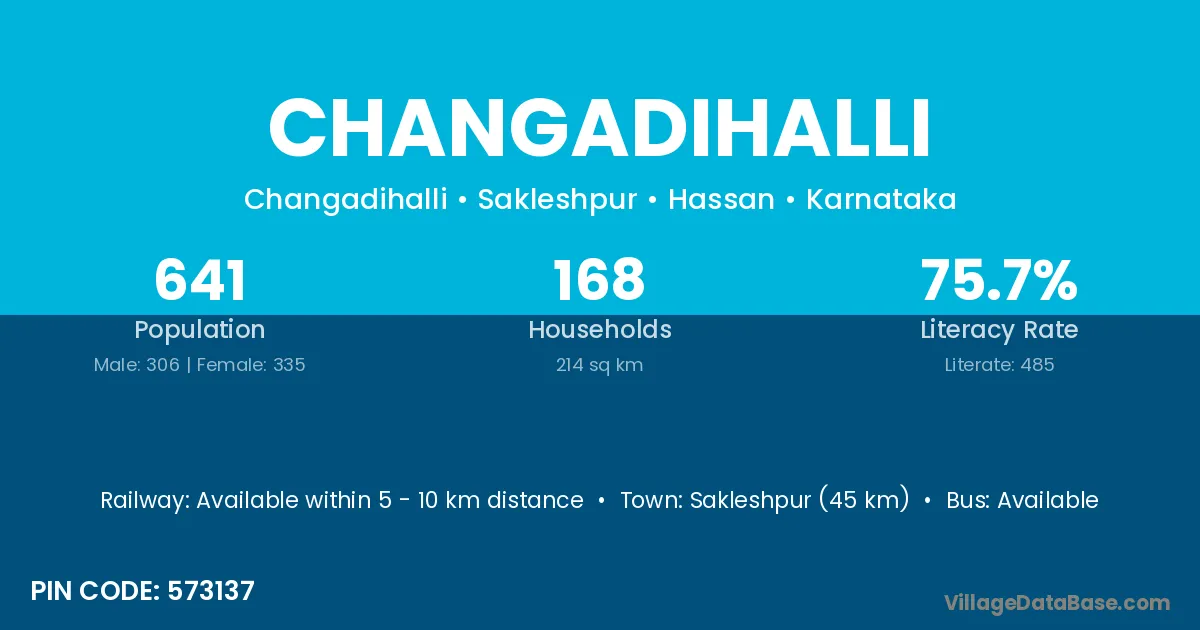 Changadihalli village has a total population of 641 people, of which 306 are males and 335 are females.