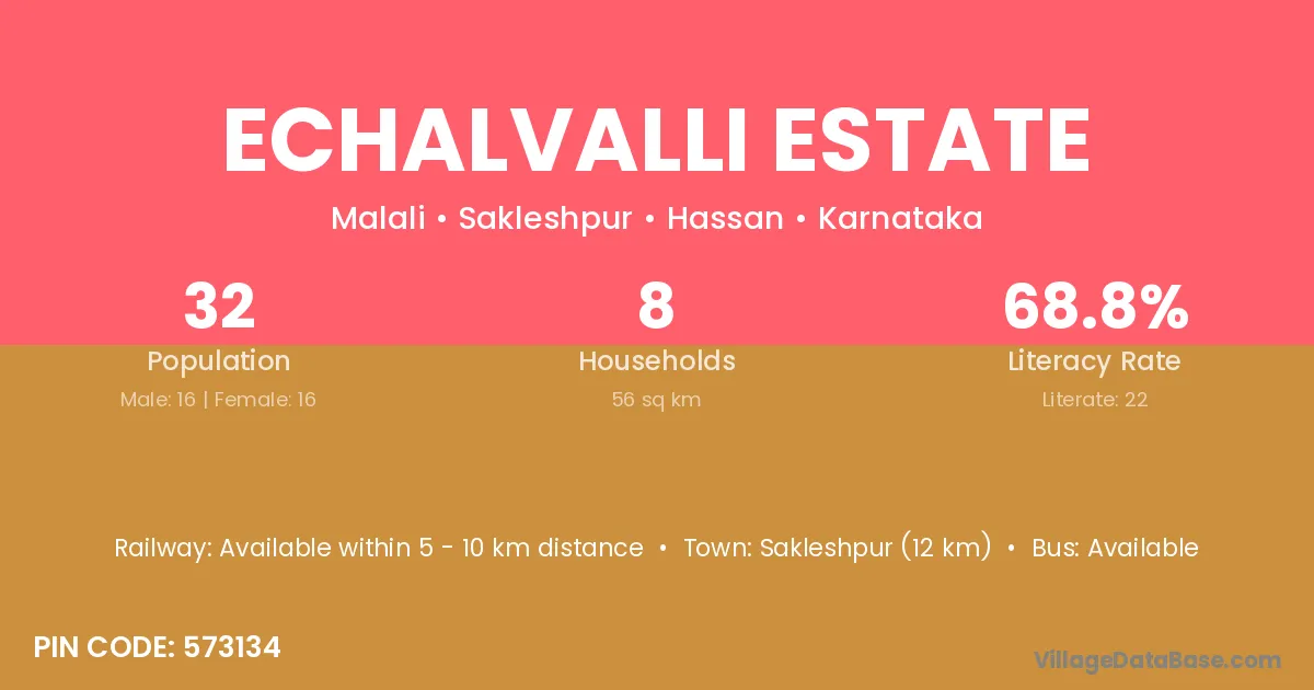 Echalvalli Estate village has a total population of 32 people, of which 16 are males and 16 are females.