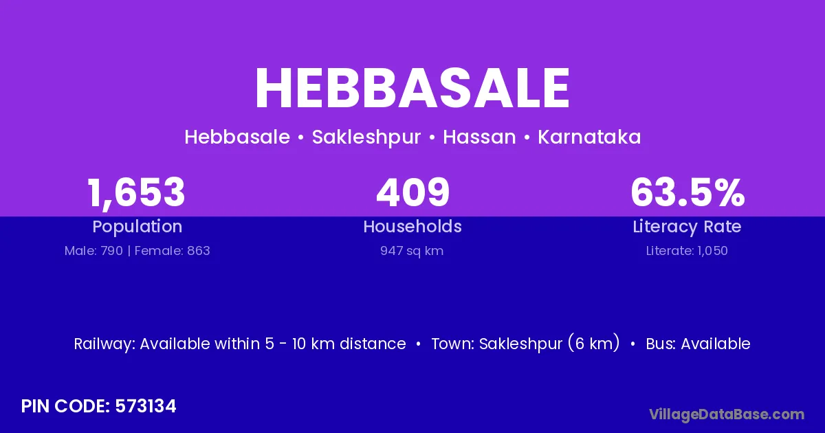 Sakleshpur (6 km) is the nearest town to Hebbasale village for major economic activities and is located approximately 6 km away.