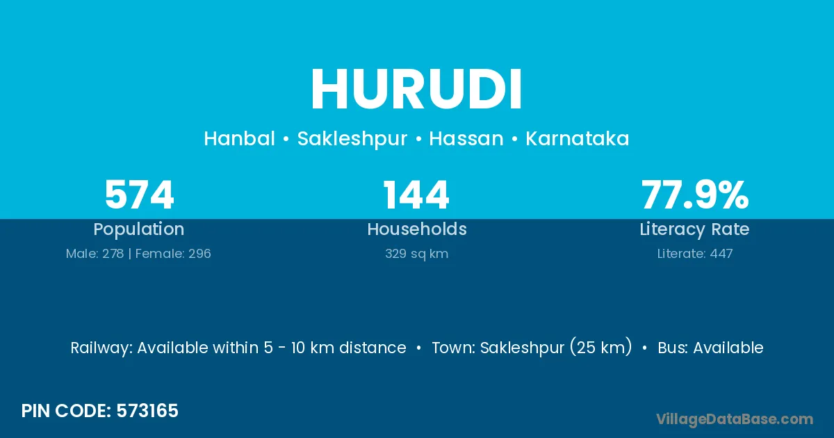 Sakleshpur (25 km) is the nearest town to Hurudi village for major economic activities and is located approximately 25 km away.