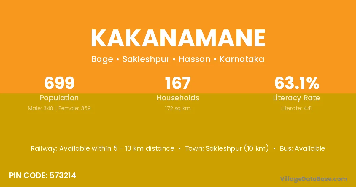 Sakleshpur (10 km) is the nearest town to Kakanamane village for major economic activities and is located approximately 10 km away.