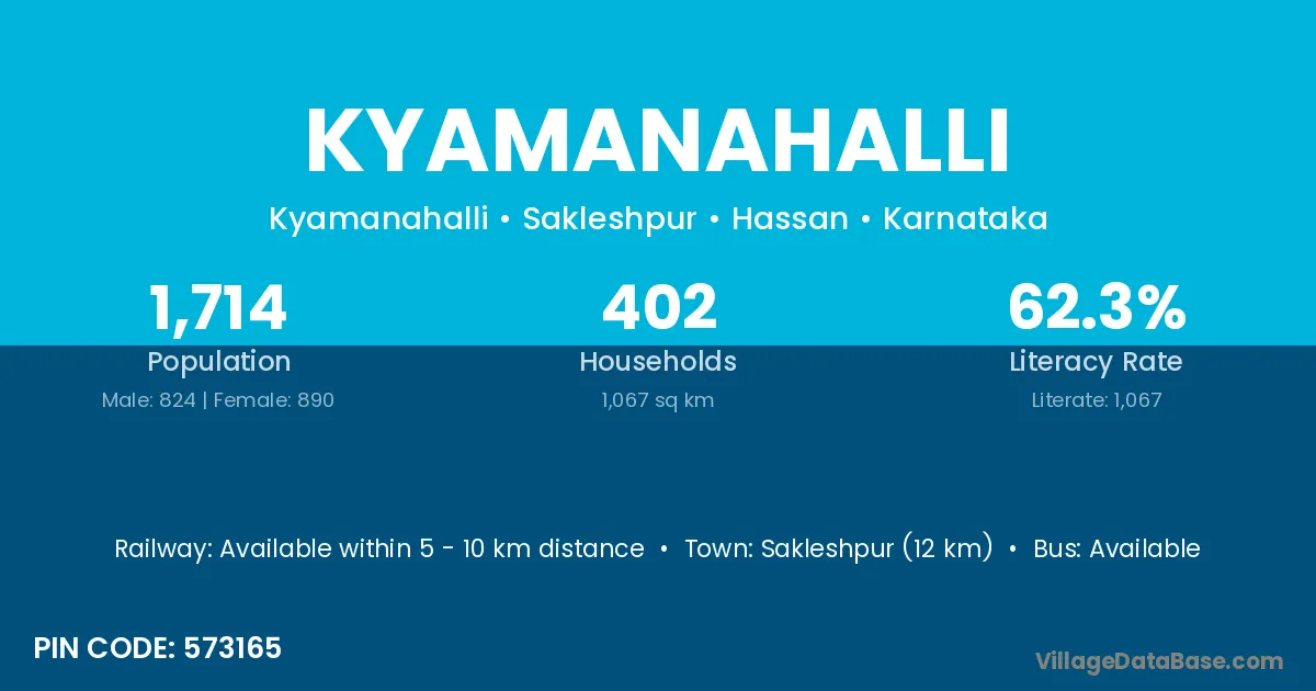 Sakleshpur (12 km) is the nearest town to Kyamanahalli village for major economic activities and is located approximately 12 km away.