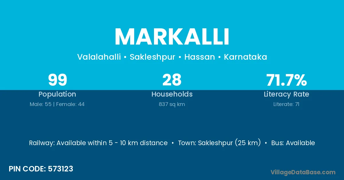 Sakleshpur (25 km) is the nearest town to Markalli village for major economic activities and is located approximately 25 km away.