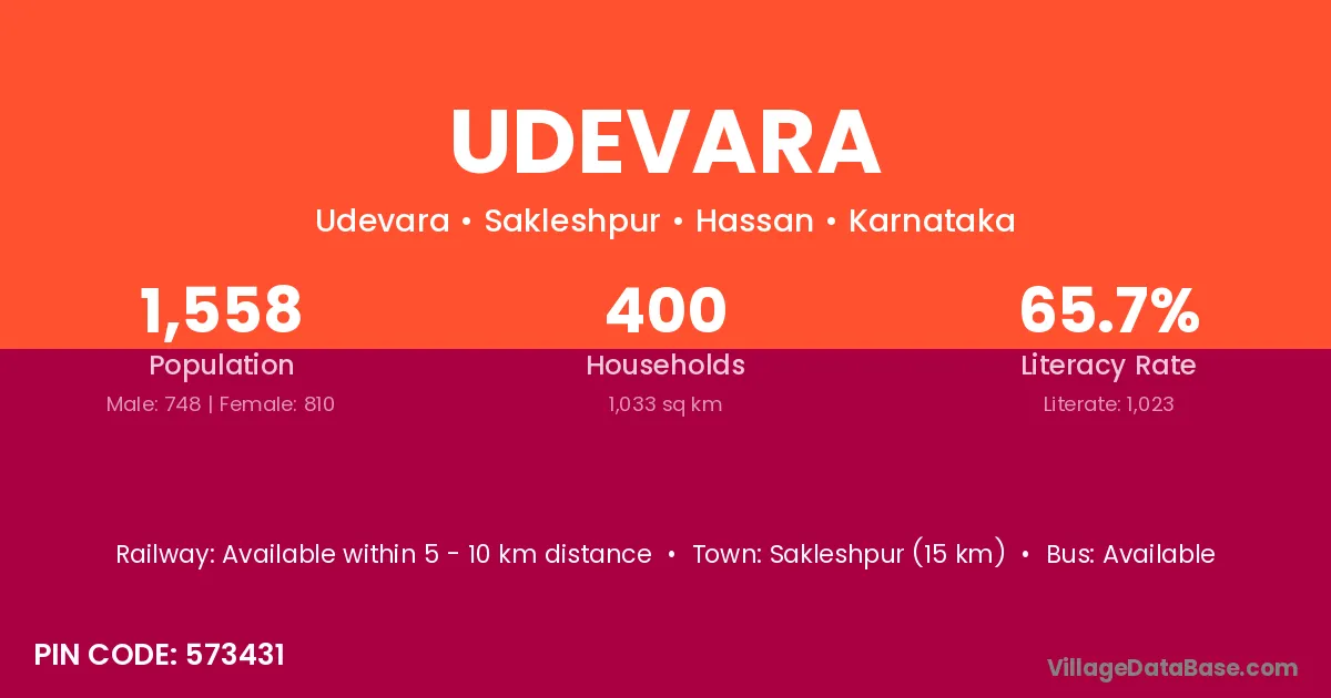 Sakleshpur (15 km) is the nearest town to Udevara village for major economic activities and is located approximately 15 km away.
