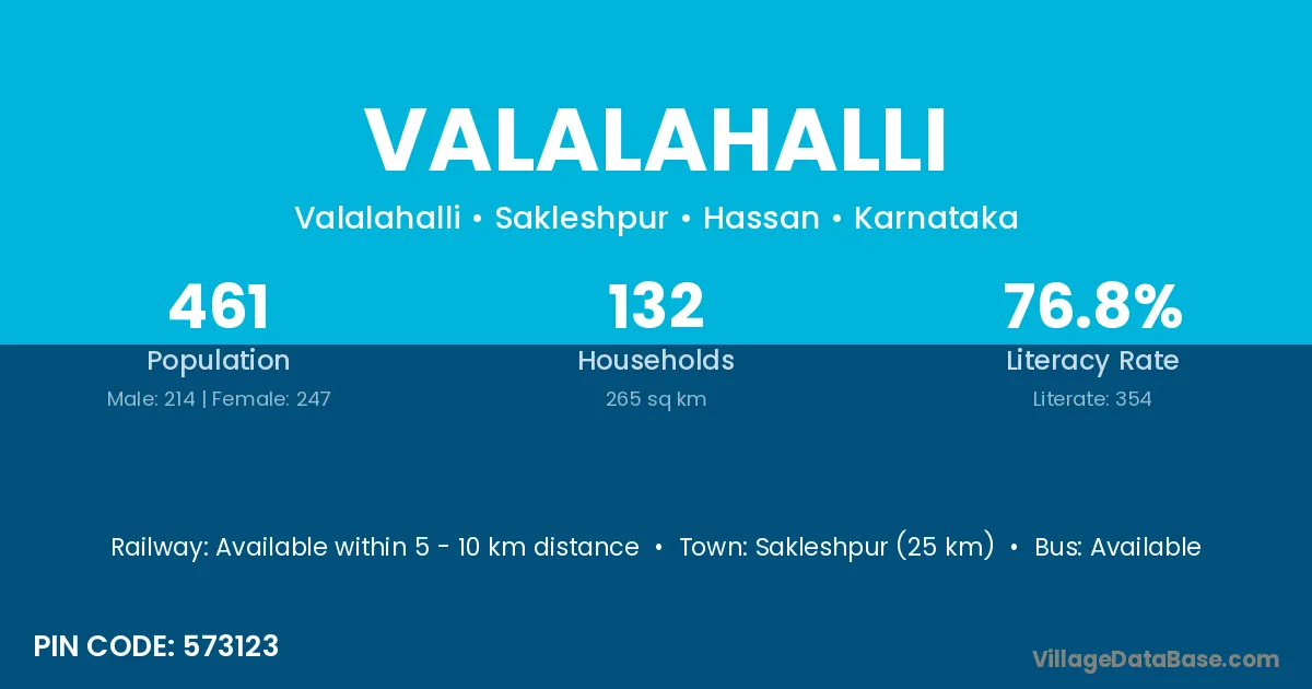 Sakleshpur (25 km) is the nearest town to Valalahalli village for major economic activities and is located approximately 25 km away.