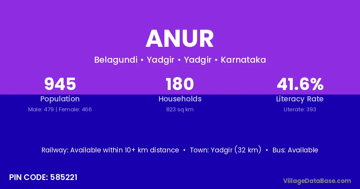 Byadgi (11 km) is the nearest town to Anur village for major economic activities and is located approximately 11 km away.