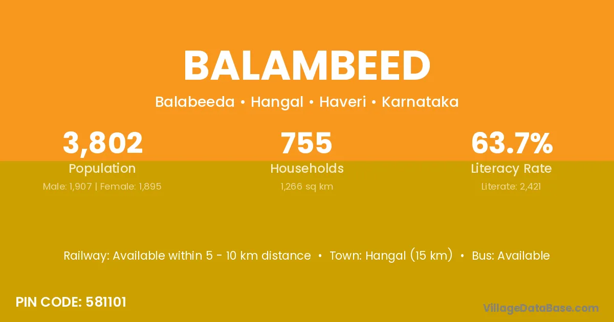 Hangal (15 km) is the nearest town to Balambeed village for major economic activities and is located approximately 15 km away.