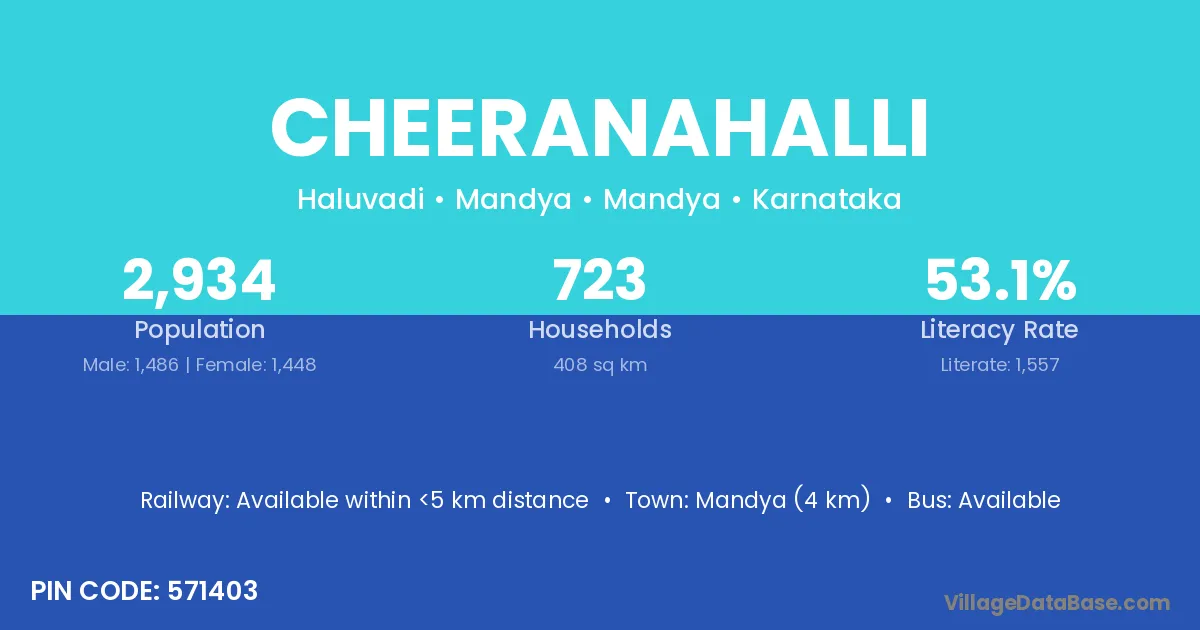 Hangal (5 km) is the nearest town to Cheeranahalli village for major economic activities and is located approximately 5 km away.