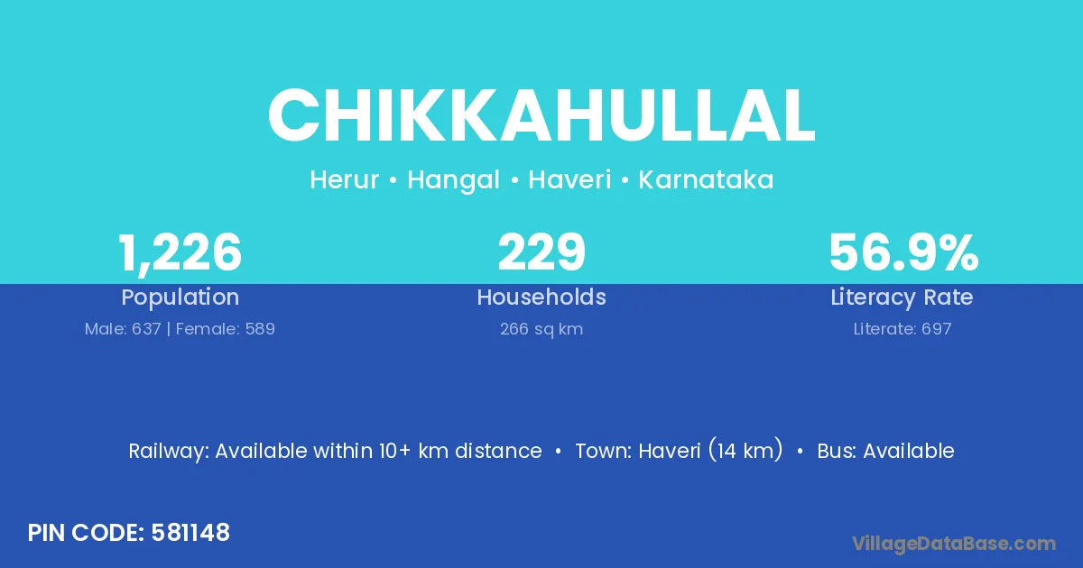 Chikkahullal village has a total population of 1,226 people, of which 637 are males and 589 are females.