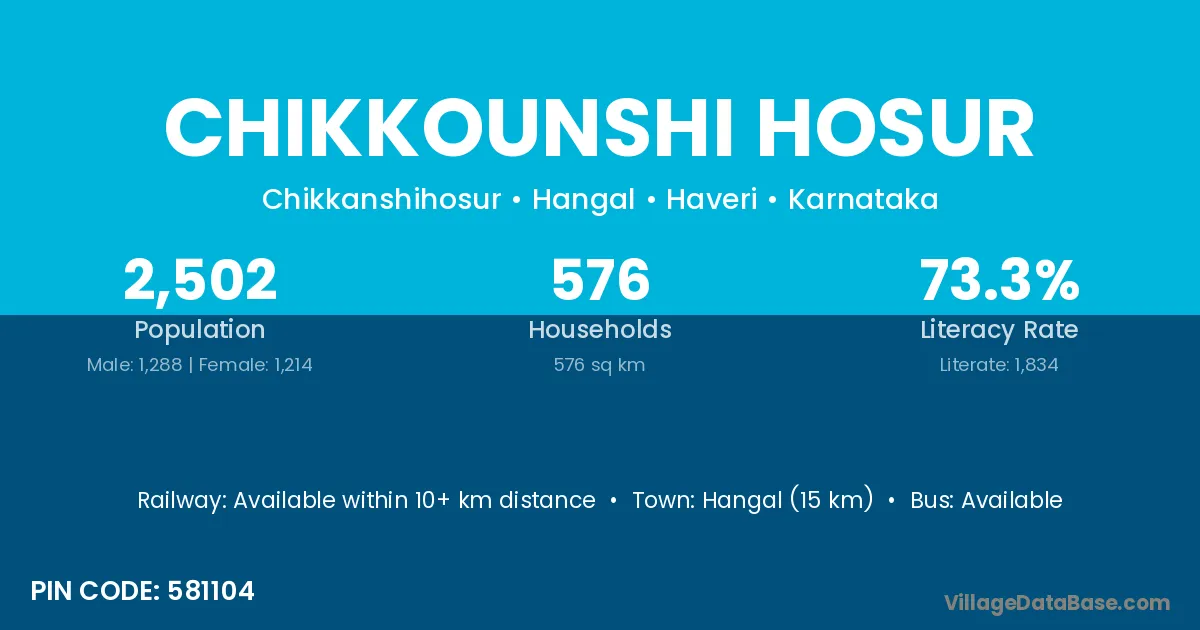 Hangal (15 km) is the nearest town to Chikkounshi Hosur village for major economic activities and is located approximately 15 km away.