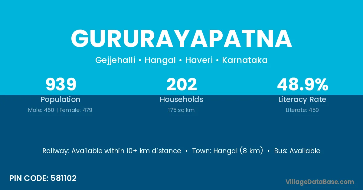Hangal (8 km) is the nearest town to Gururayapatna village for major economic activities and is located approximately 8 km away.