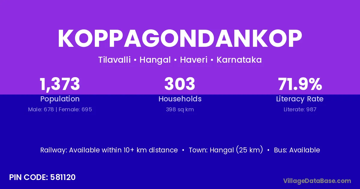 Hangal (25 km) is the nearest town to Koppagondankop village for major economic activities and is located approximately 25 km away.