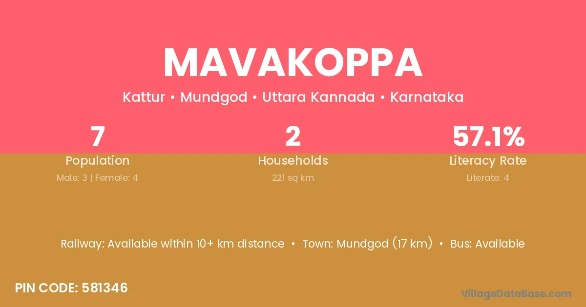 Hangal (8 km) is the nearest town to Mavakoppa village for major economic activities and is located approximately 8 km away.