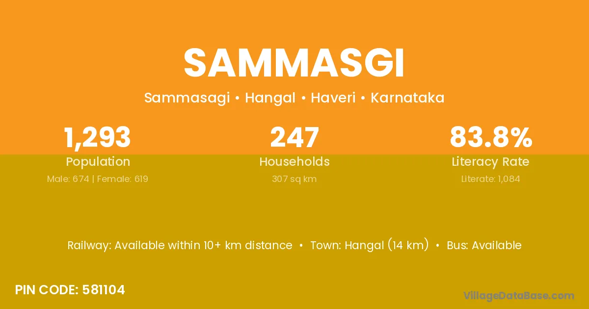 Hangal (14 km) is the nearest town to Sammasgi village for major economic activities and is located approximately 14 km away.