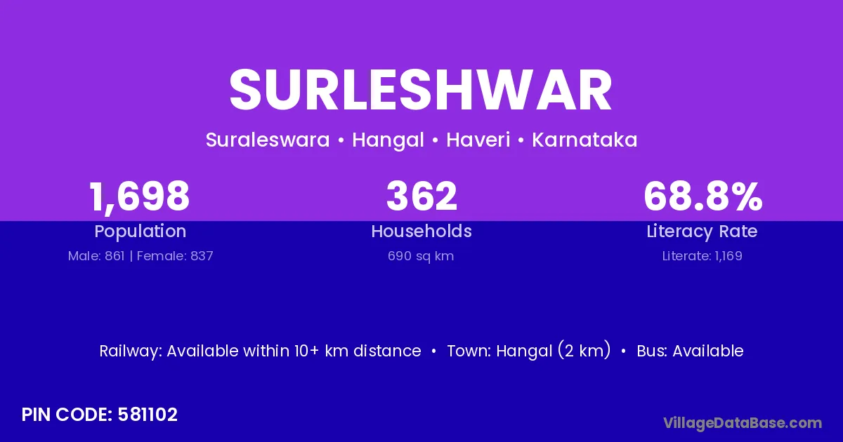 Hangal (2 km) is the nearest town to Surleshwar village for major economic activities and is located approximately 2 km away.