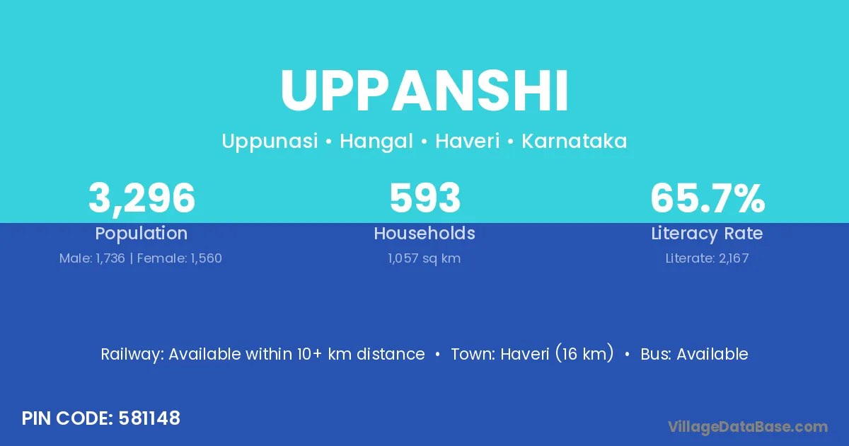Haveri (16 km) is the nearest town to Uppanshi village for major economic activities and is located approximately 16 km away.