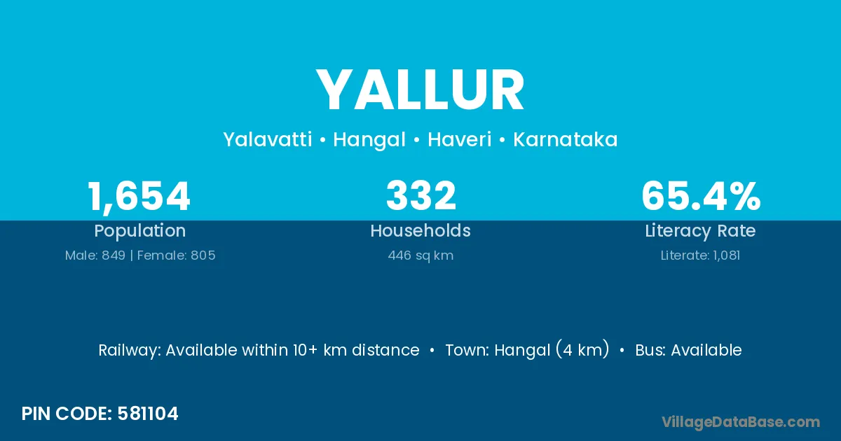 Hangal (4 km) is the nearest town to Yallur village for major economic activities and is located approximately 4 km away.