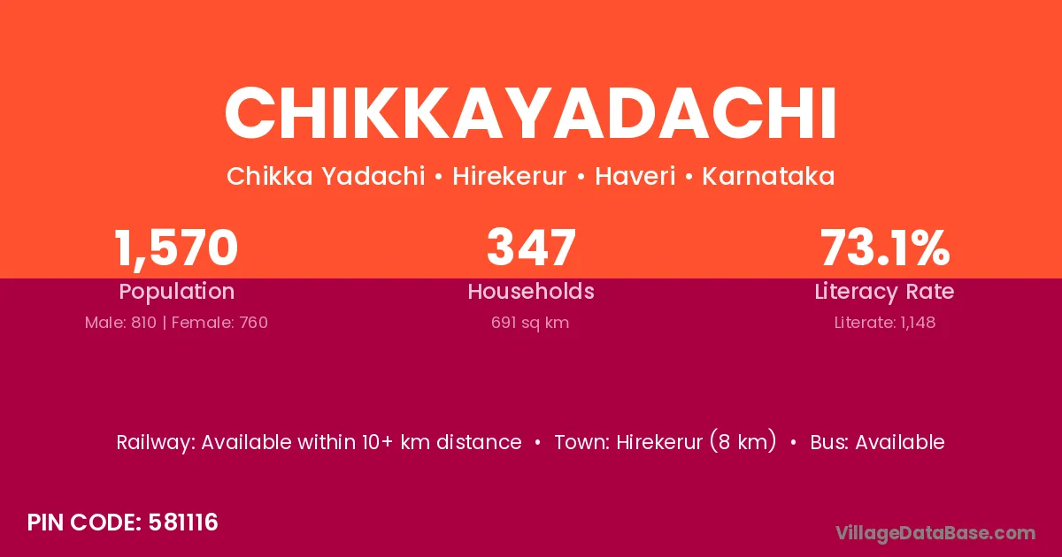 Hirekerur (8 km) is the nearest town to Chikkayadachi village for major economic activities and is located approximately 8 km away.