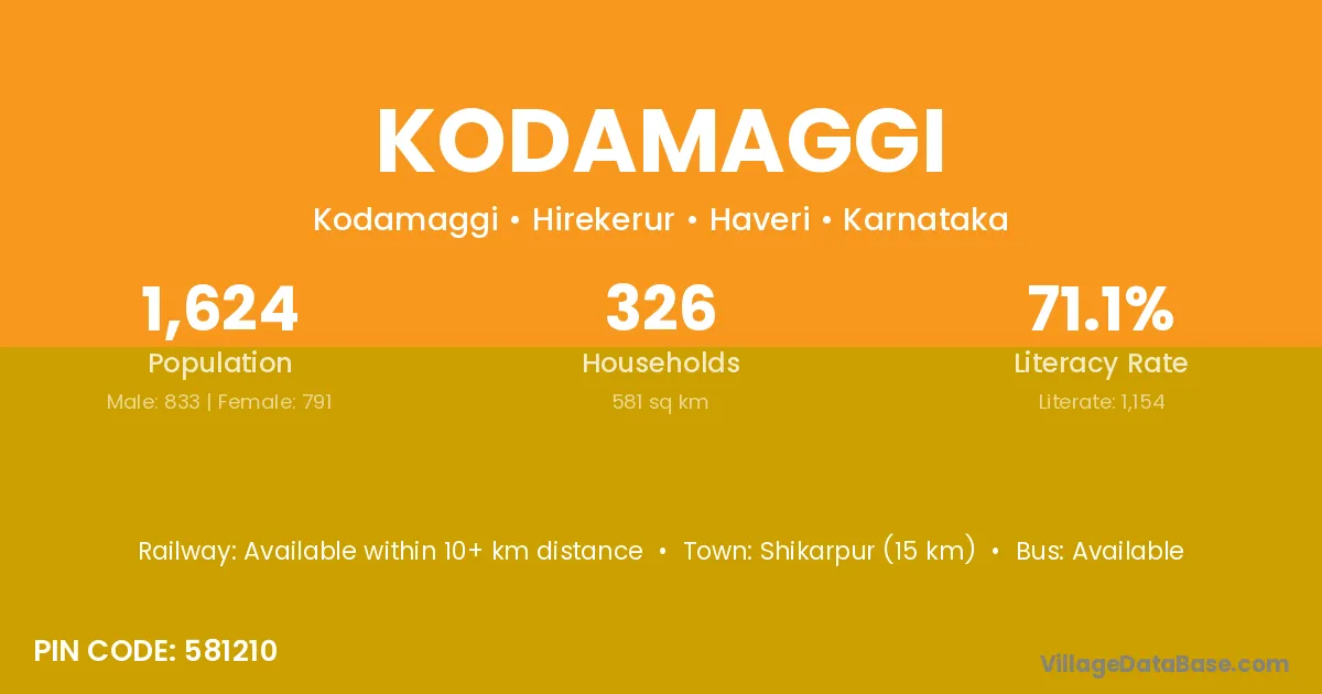 Shikarpur (15 km) is the nearest town to Kodamaggi village for major economic activities and is located approximately 15 km away.