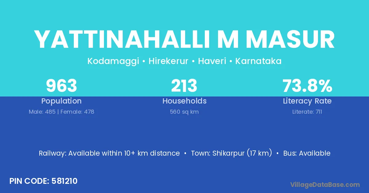 Yattinahalli M Masur village has a total population of 963 people, of which 485 are males and 478 are females.