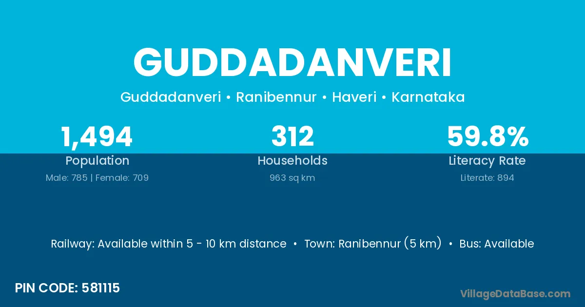 Ranibennur (5 km) is the nearest town to Guddadanveri village for major economic activities and is located approximately 5 km away.