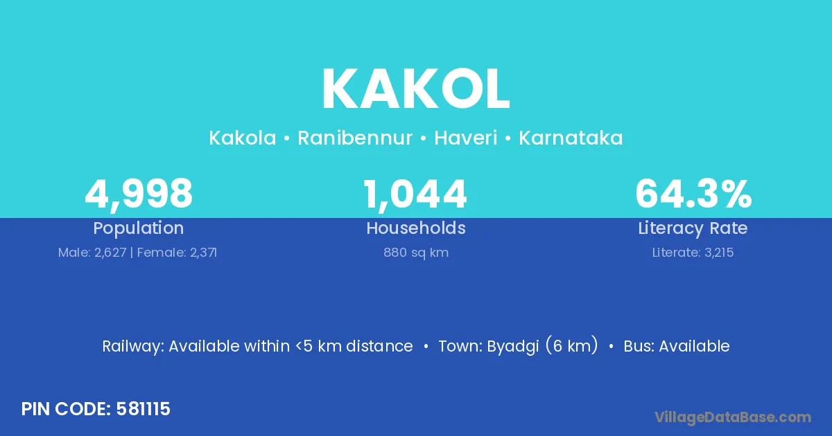 Byadgi (6 km) is the nearest town to Kakol village for major economic activities and is located approximately 6 km away.