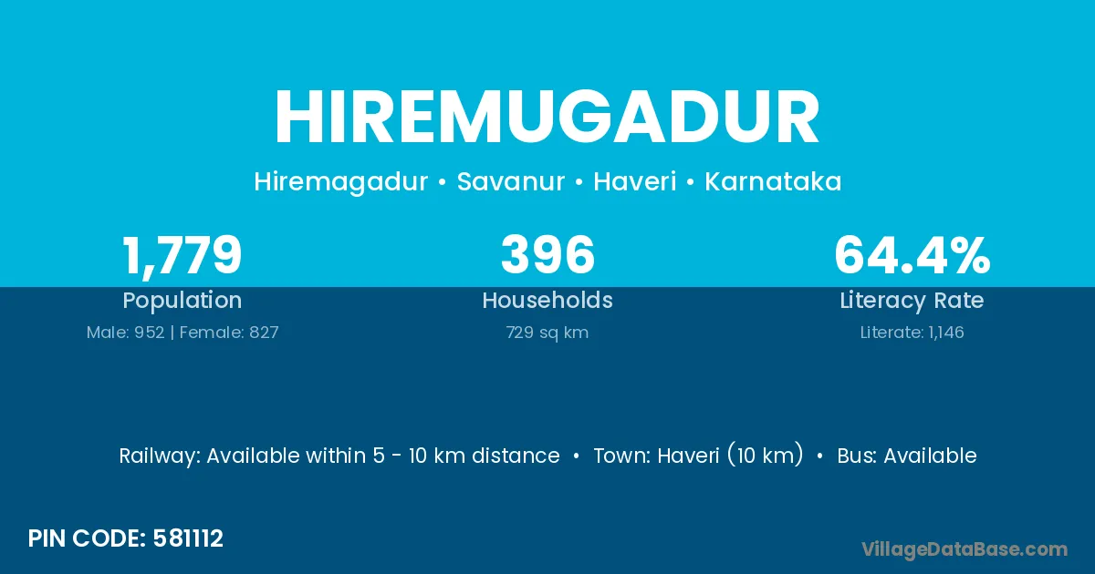Haveri (10 km) is the nearest town to Hiremugadur village for major economic activities and is located approximately 10 km away.