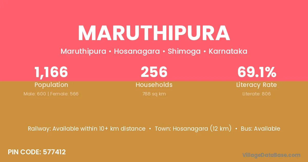 Savanur (13 km) is the nearest town to Maruthipura village for major economic activities and is located approximately 13 km away.