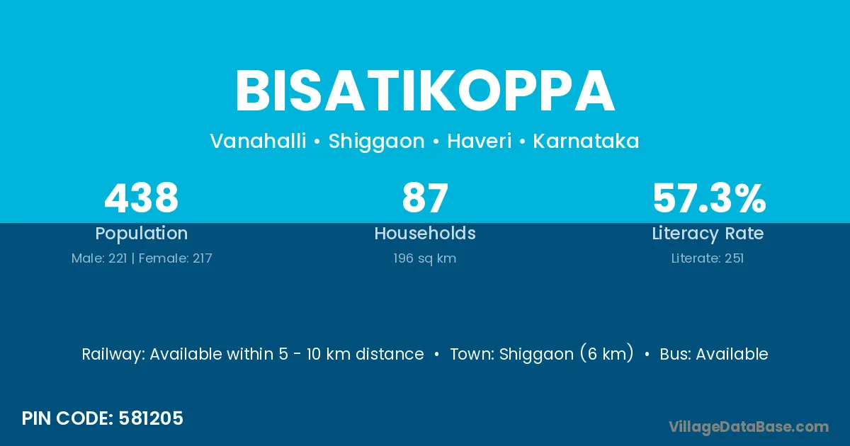 Shiggaon (6 km) is the nearest town to Bisatikoppa village for major economic activities and is located approximately 6 km away.