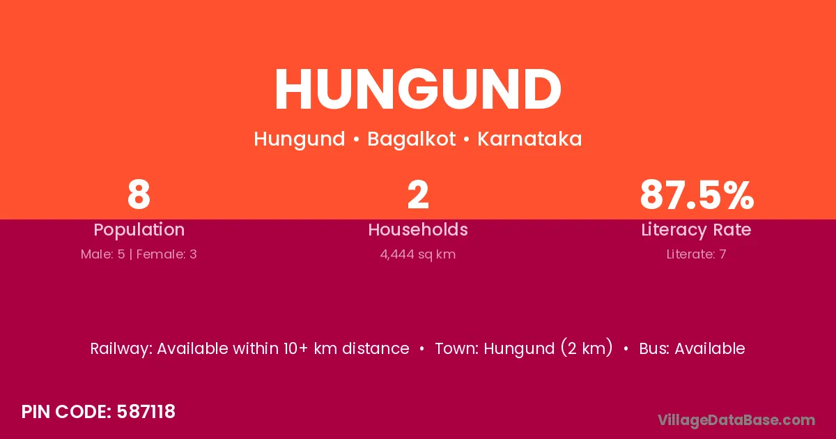 Bankapura (10 km) is the nearest town to Hungund village for major economic activities and is located approximately 10 km away.