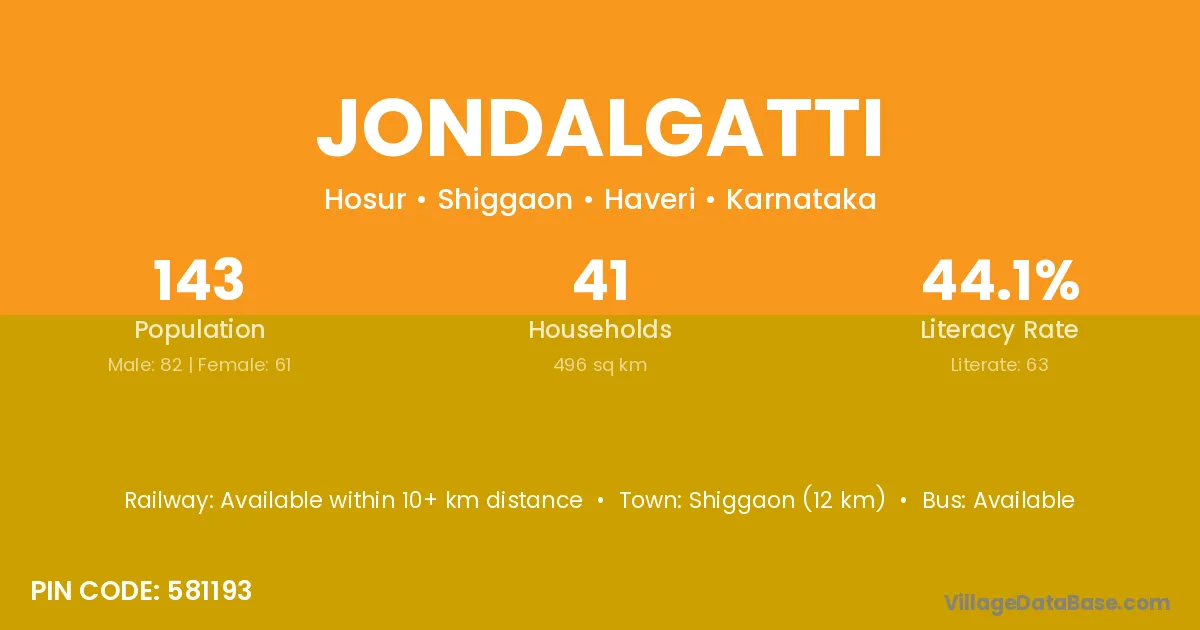 Shiggaon (12 km) is the nearest town to Jondalgatti village for major economic activities and is located approximately 12 km away.