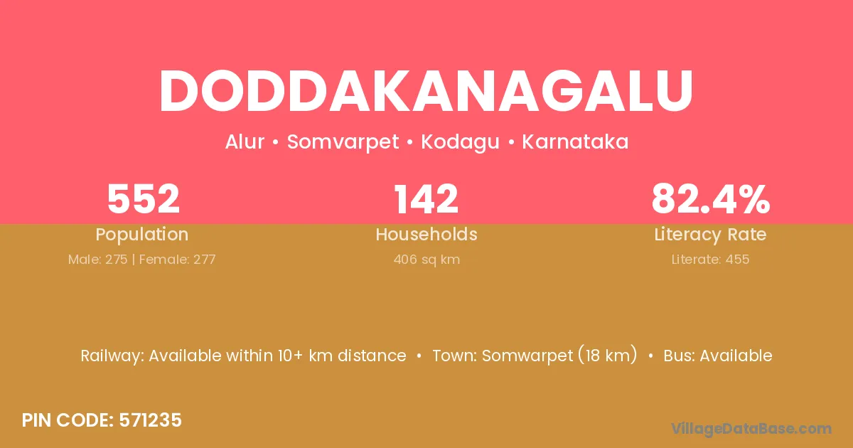 Somwarpet (18 km) is the nearest town to Doddakanagalu village for major economic activities and is located approximately 18 km away.