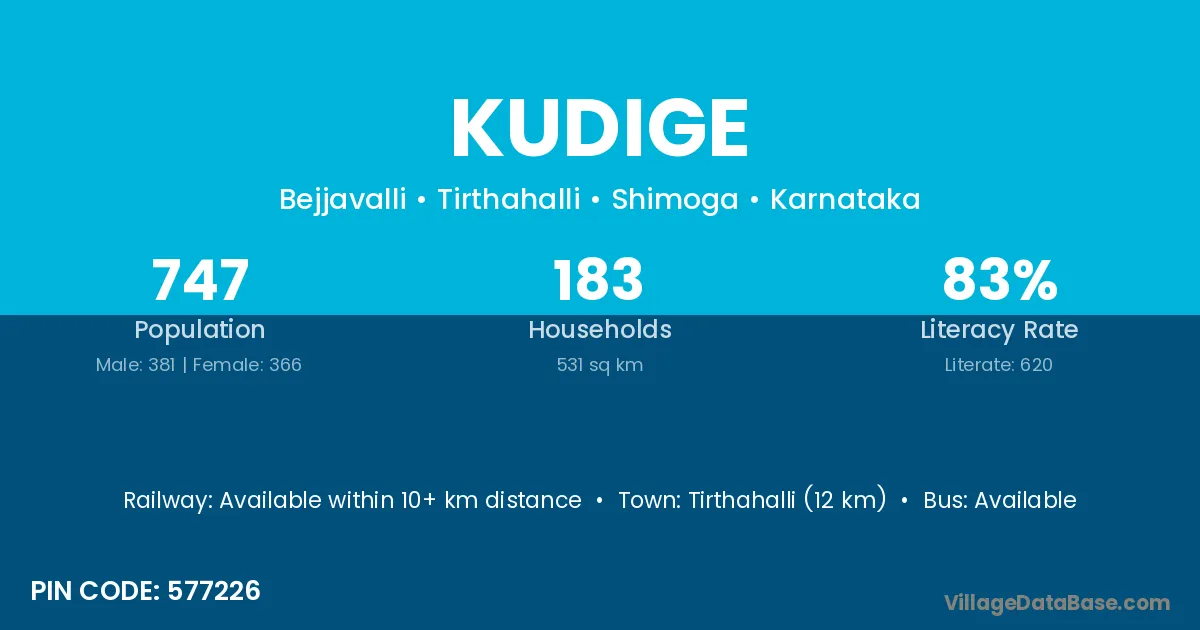 Kushalnagar (3 km) is the nearest town to Kudige village for major economic activities and is located approximately 3 km away.
