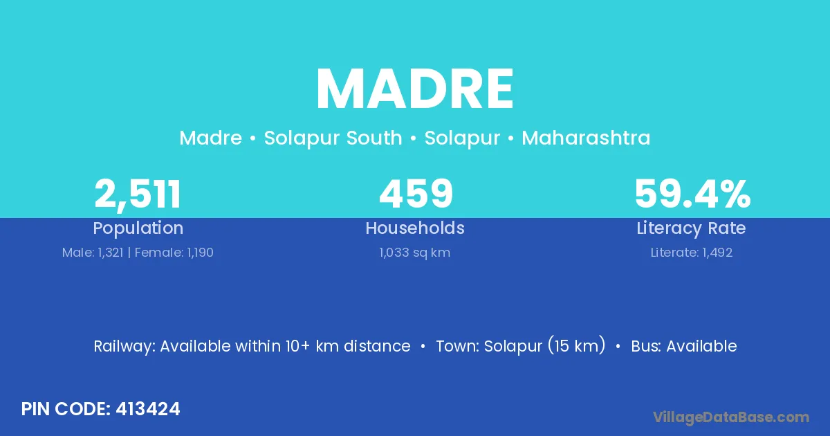 Arkalgud (22 km) is the nearest town to Madre village for major economic activities and is located approximately 22 km away.