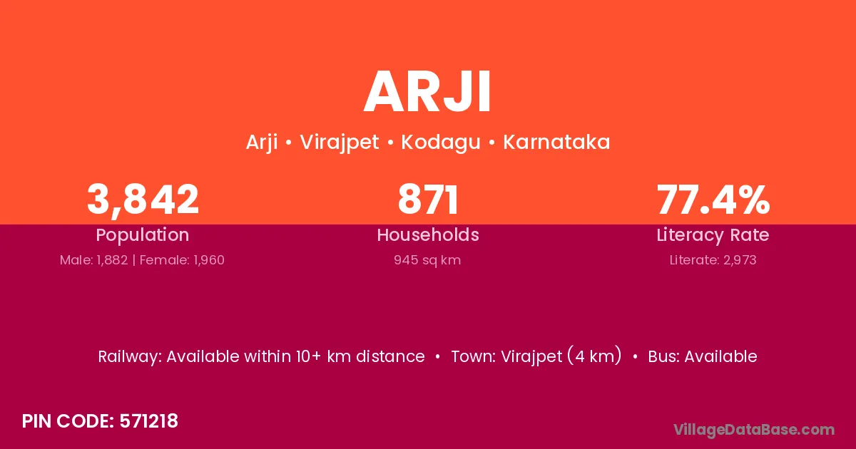 Virajpet (4 km) is the nearest town to Arji village for major economic activities and is located approximately 4 km away.