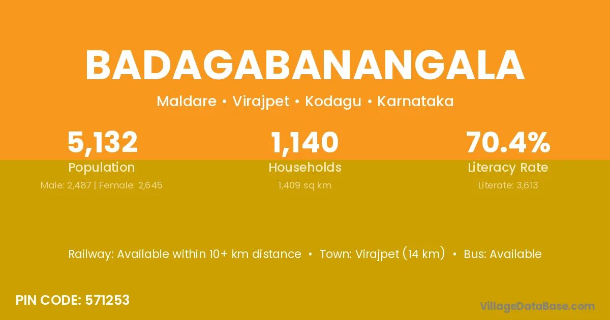 Virajpet (14 km) is the nearest town to Badagabanangala village for major economic activities and is located approximately 14 km away.
