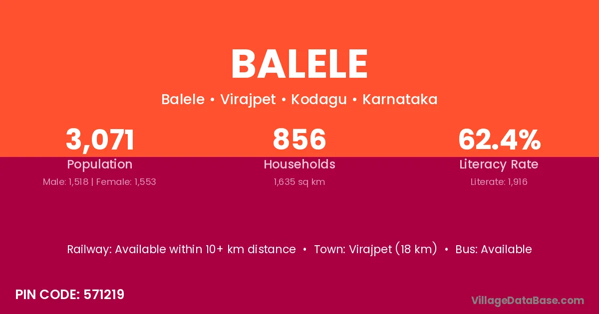 Virajpet (18 km) is the nearest town to Balele village for major economic activities and is located approximately 18 km away.